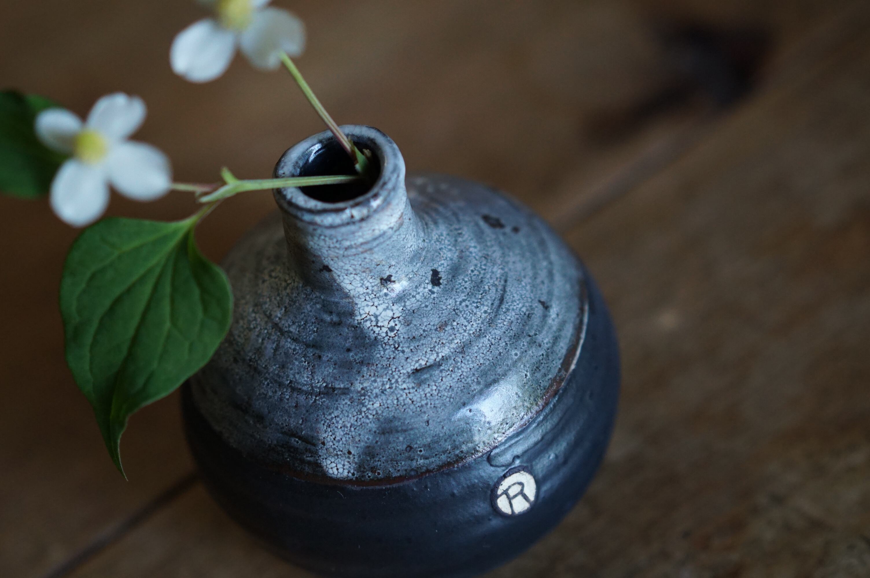 野の花が似合う渋さとモダンさがある花器です。