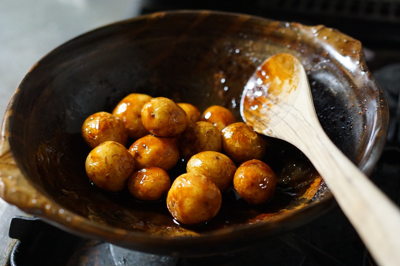 土鍋は 薪や炭と同じく輻射熱で調理をするので 肉も野菜もふっくらと柔らかく 美味しくできます。